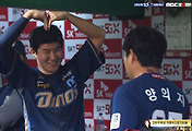 김찬형의 안타를 보고 좋아하는 라이트의 바이브.