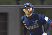 경기 시작하자마자 초구를 쳐서 3루타 만드는 이명기.