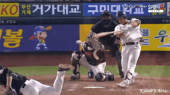 espn 중계진들을 웃겨준 박석민의 홈런 타구 확인 자세.