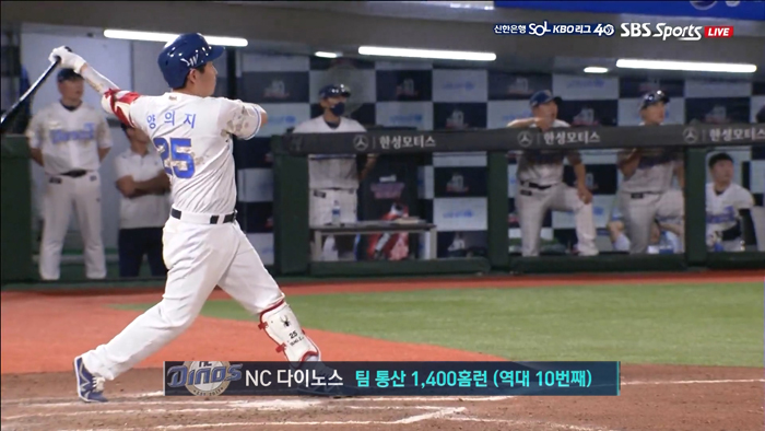 이 홈런으로 엔씨는 역대 10번째로 팀 통산 1400홈런을 기록함.