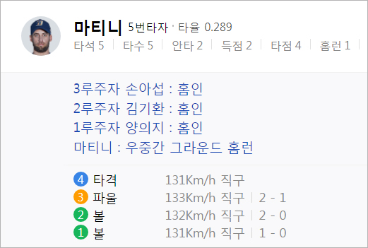 * 마티니의 인사이드 더 파크 만루홈런