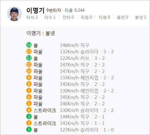 다음 타자 박민우가 초구 안타로 출루했고, 결국 이명기가 굴린 14구 볼넷의 스노우볼은