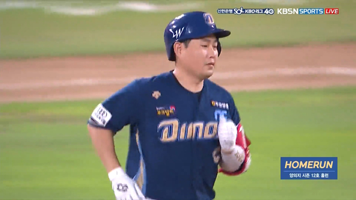 3점차로 뒤진 4회에 터진 양의지의 추격하는 솔로 홈런.